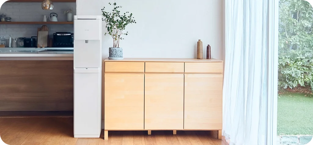 「feel free alto」は、床置きタイプでインテリアに調和するスタイリッシュなデザインを採用。5種類の温度帯を選べるなどの機能を搭載し、毎年のサーバー交換を行うことで衛生面でも安心してご利用いただけます。